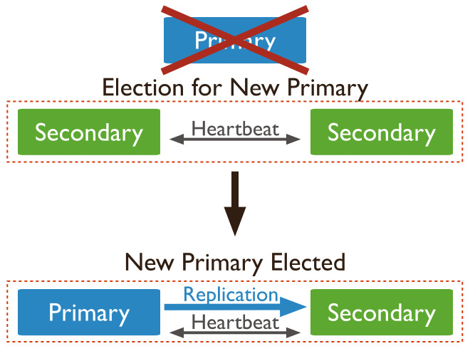 이때 Primary가 일시적으로 없기 때문에 쓰기작업을 수행될 수 없으나 Secondary에 의해 읽기 쿼리는 계속 제공할 수 있습니다.