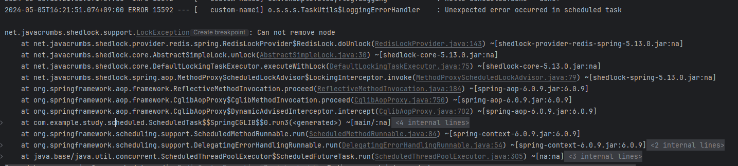 graceful shutdown과 @SchedulerLock를 동시에 활용하면 작업이 모두 끝나고 Lock을 반납하다가 LockException이 발생합니다.