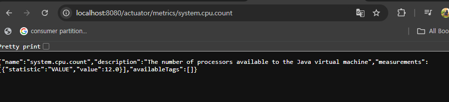system.cpu.count 지표를 통하여 JVM에서 사용가능한 프로세서의 개수를 확인할 수 있습니다.