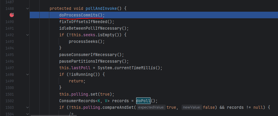 pollAndInvoke() 메서드 pollAndInvoke() 메서드에서는 내부적으로 doPorcessCommits 메서드를 호출합니다.