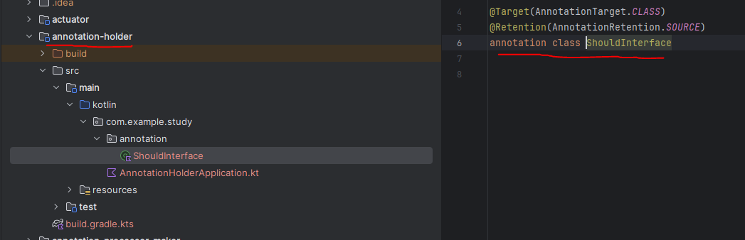 첫 번째로 @ShouldInterface 어노테이션을 annotation-holder 모듈에 정의합니다.