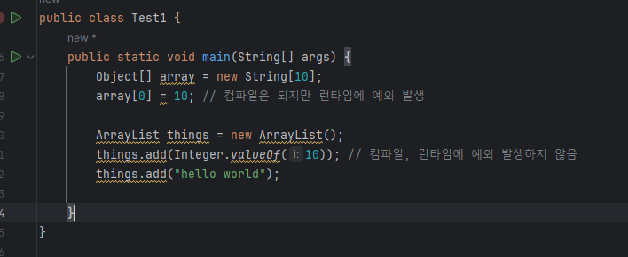 제네릭이 없던 시대의 아래의 자바 소스코드도 문제없이 컴파일되어야 합니다.