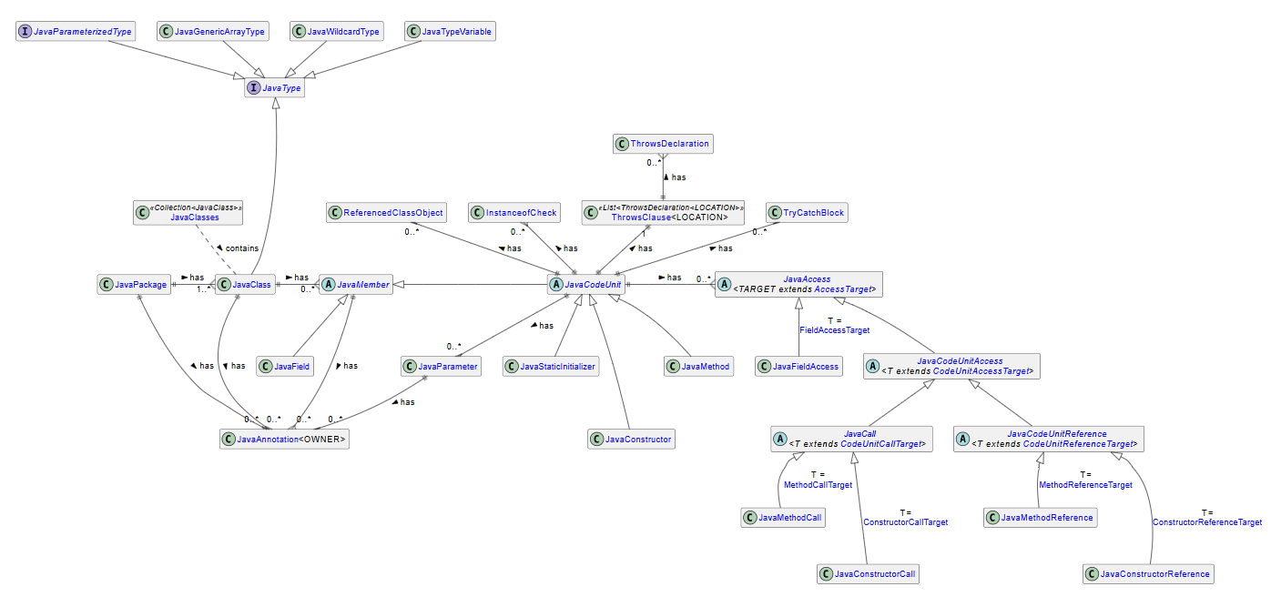 Core 계층은 Java Reflection API 유사한 역할을 수행하며 JavaMethod, JavaField 클래스를 제공하여 getName(), getMethods(), getRawType() or getRawParameterTypes()을 호출할 수 있도록 도와줍니다.