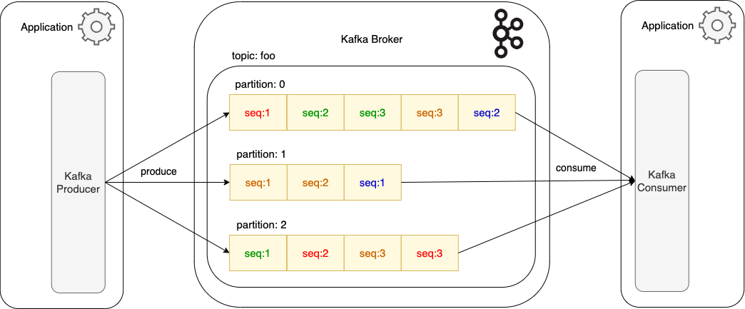 foo라는 topic이 구성되어 있고 3개의 파티션으로 구성되어 있습니다.