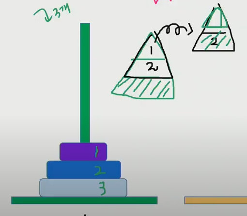 그리고 나머지 덩어리 탑 또한 맨 밑의 원판(2)과 나머지 덩어리 탑(1)으로 생각합니다.