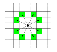 나이트는 다음그림과 같이 이동할 수 있습니다.