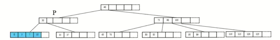 이 경우 P의 값을 하나 가져와서 자식으로 내리기 때문에 P가 MIN_KEY 조건을 위배할 수 있는 상황이 발생했다.