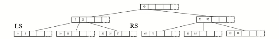 5. MIN_KEY 조건을 위배했으므로 LS( 0, 5, 7) 또는 RS(30, 35, 37)에서 값을 가져올 수 있다면 가져와야 합니다.