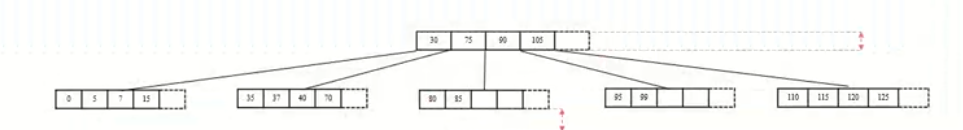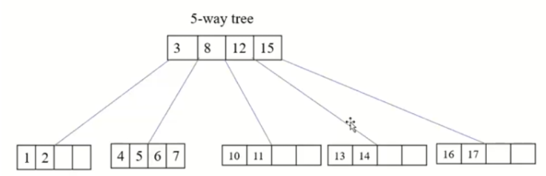 다음 그림은 5차 B-Tree, 5-way B-Tree의 그림입니다.