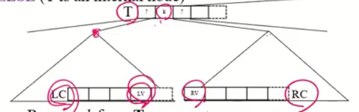 그 값으로 적당한 게 LV 또는 RV가 될 것입니다.(k의 직전수, 직후수 이기 때문에) 이때 그러면 LV나 RV를 뽑아올 예정이므로 LC나 RC에서 MIN_KEY 조건을 위배할 수 있는 상황이 발생하겠죠? 따라서 LC가 MIN_KEY 조건을 위배하지 않는다면 LV를 뽑아오고, LC는 뽑아왔을 때 MIN_KEY 조건을 위배한다면 RC에서 MIN_KEY 조건을 확인하고 뽑아올 수 있다. 만약 위배한다면 뽑아올 수 없다.