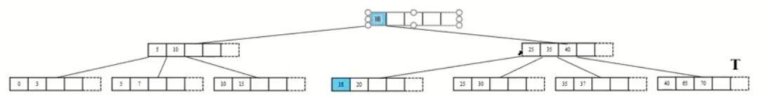 Middle을 T로 놓고 다시 MAX_KEY 조건을 위배하는지 검사합니다. (node T는 20으로 key의 값이 1개여서 MAX_KEY 조건을 위배하지 않습니다.) -> 따라서 종료하게 됩니다.