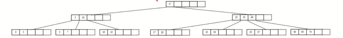 다음 그림은 21이 삽입된 후 트리입니다(visualization의 경우 left가 3개 midle1개 right2개로 쪼개집니다)