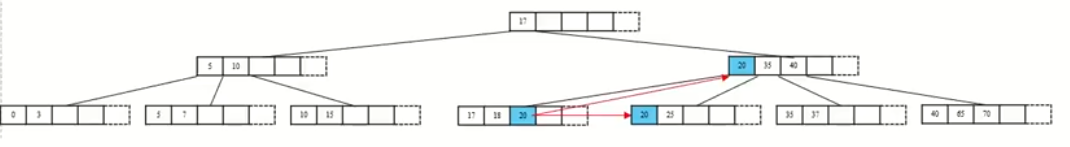 1. k 값을 가진 leaf node T를 탐색합니다 (여기서 T는 17, 20입니다)