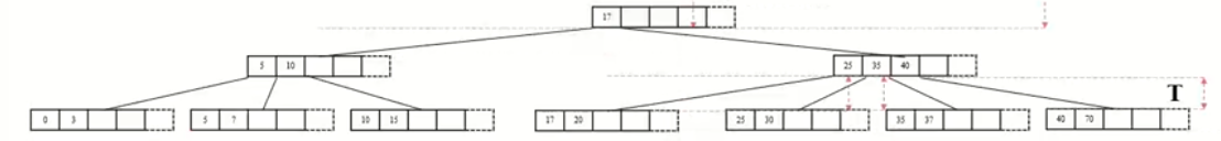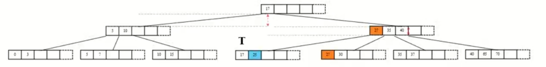 2. T에서 k값을 삭제하고 MIN_KEY 조건을 위배하는지 확인합니다. (key는 17로 1개로 MIN_KEY 조건을 위배합니다.)
