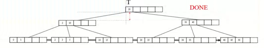 5. MAX_KEY 조건을 위배하지 않는다면 종료하고, 위배한다면 트리의 재구성이 일어납니다. (부모에서 재구성이 일어날 때는 B-Tree처럼 발생하게 됩니다) = (left node 가 아니라면)