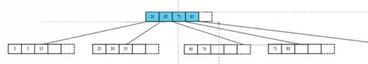 7. 부모 노드는 25의 값을 1개 가지기 때문에 MIN_KEY 조건을 위배하므로 LS 또는 RS에서 값을 빌려와야 합니다( 하지만 LS는 존재하지 않고 RS(75, 85)에서는 값을 빌려올 수 없는 상황입니다.)