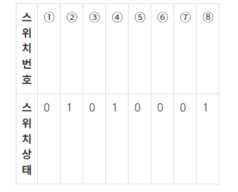 스위치는 켜져 있거나 꺼져있는 상태입니다. (1은 켜져 있음, 0은 꺼져있음을 나타냅니다.)