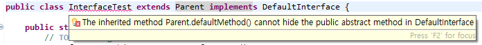 default method가 선언된 interface를 상속받아 다시 abstract method로 만들 수 있습니다.