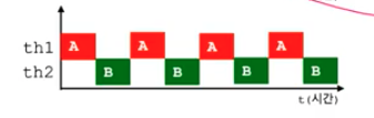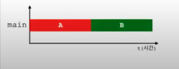 멀티 쓰레드 싱글 코어 이므로 A와 B의 작업이 겹치며 수행되지 않습니다.