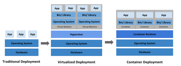 애플리케이션은 물리 서버에서 실행하던 전통적인 배포 시대의 문제점을 해결하기 위해 가상화가 도입되었습니다.