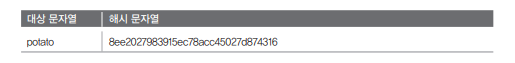 https://repo.yona.io/files/4000 암호화할 대상인 문자열 'potato'의 해시 문자열을 다음과 같이 찾았습니다.