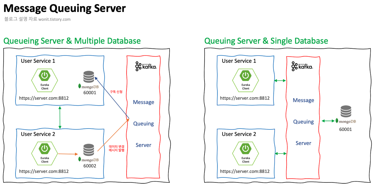 2-2. 하나의 데이터베이스를 운영하며 중간에 큐잉 서버를 두는 방식
