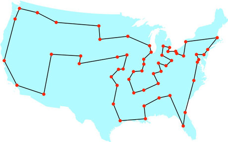 외판원이 가장 적은 비용으로 모든 도시를 방문하면서 자기 집으로 돌아온다고 하여 외판원 순회라는 이름이 붙었습니다.