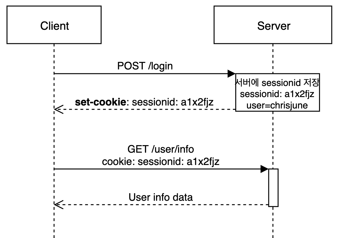 기본적으로 HTTP 프로토콜 환경은 "connectionless, stateless" 특성을 가지기 때문에 서버는 클라이언트가 누구인지 매번 확인해야 합니다.