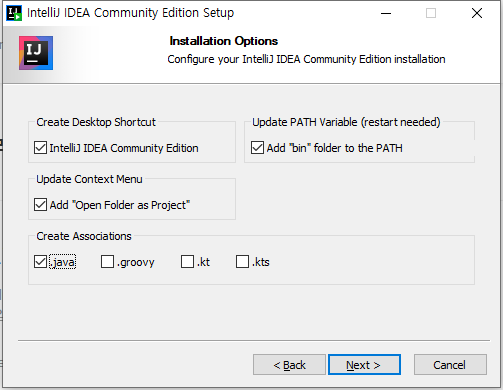 Update Path Variable : 윈도 환경변수에 자동으로 추가할 수 있도록 체크