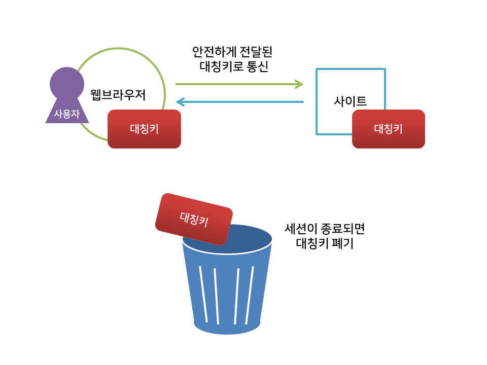 이러한 키를 안전하게 교환하는 것이 대칭키 암호화 방식의 가장 중요한 부분이라 할 수 있습니다.
