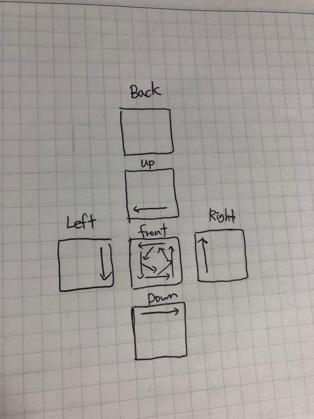 1. 어떤 면에서는 큐브가 돌아가는 방향에 맞춰서 가운데를 제외한 부분들이 회전해야 합니다.