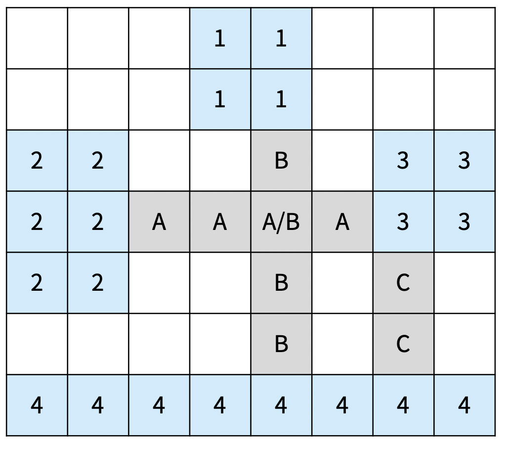 - 방향이 가로인 다리는 양 끝이 가로 방향으로 섬과 인접해야 합니다.
