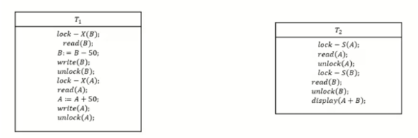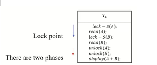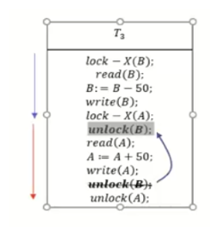 T1, T2는 two-pahse locking protocol을 따르지 않음.