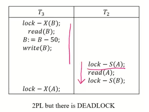 2PL이 confict serializability 하지 않다면 어떤 트랜잭션 X는 non-serializable schedule을 가질 것이다.