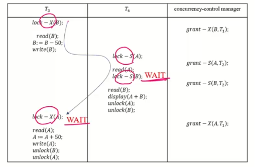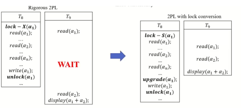 T8의 경우에는 초반에 read만 하지만 lock-X가 걸려있어서 T9에서 계속 기다려야 함