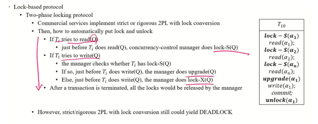 따라서 upgrade를 활용하여 read 할 때 lock-S로 초기에 걸고 write를 하기 전에 upgrade를 통해 lock-X로 만듦