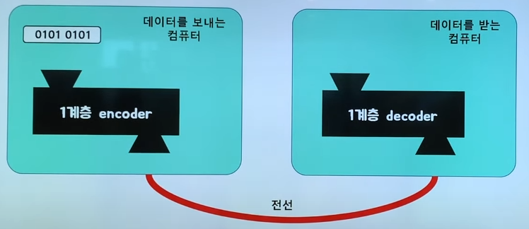 즉, 물리 계층은 두 컴퓨터 사이의 데이터의 인코딩, 디코딩을 지원하는 모듈입니다.