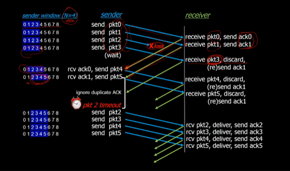 timer를 두고 receiver가 일정 시간 동안 ack를 보내주지 않으면 패킷을 재전송합니다.