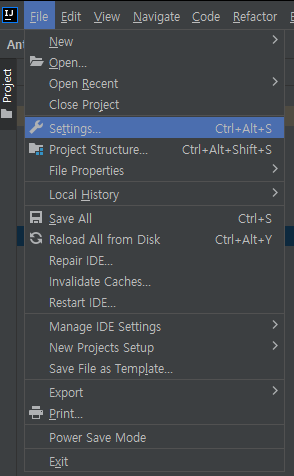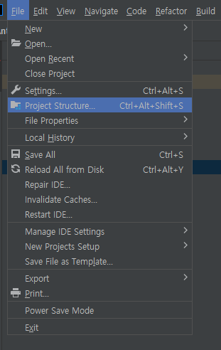 File -> Project Structure 선택