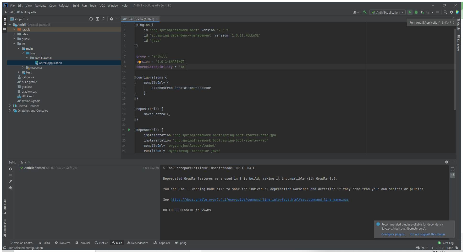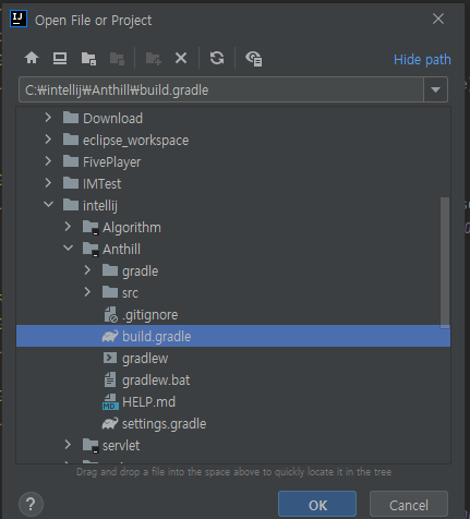 Anthill의 build.gradle 선택하고 OK