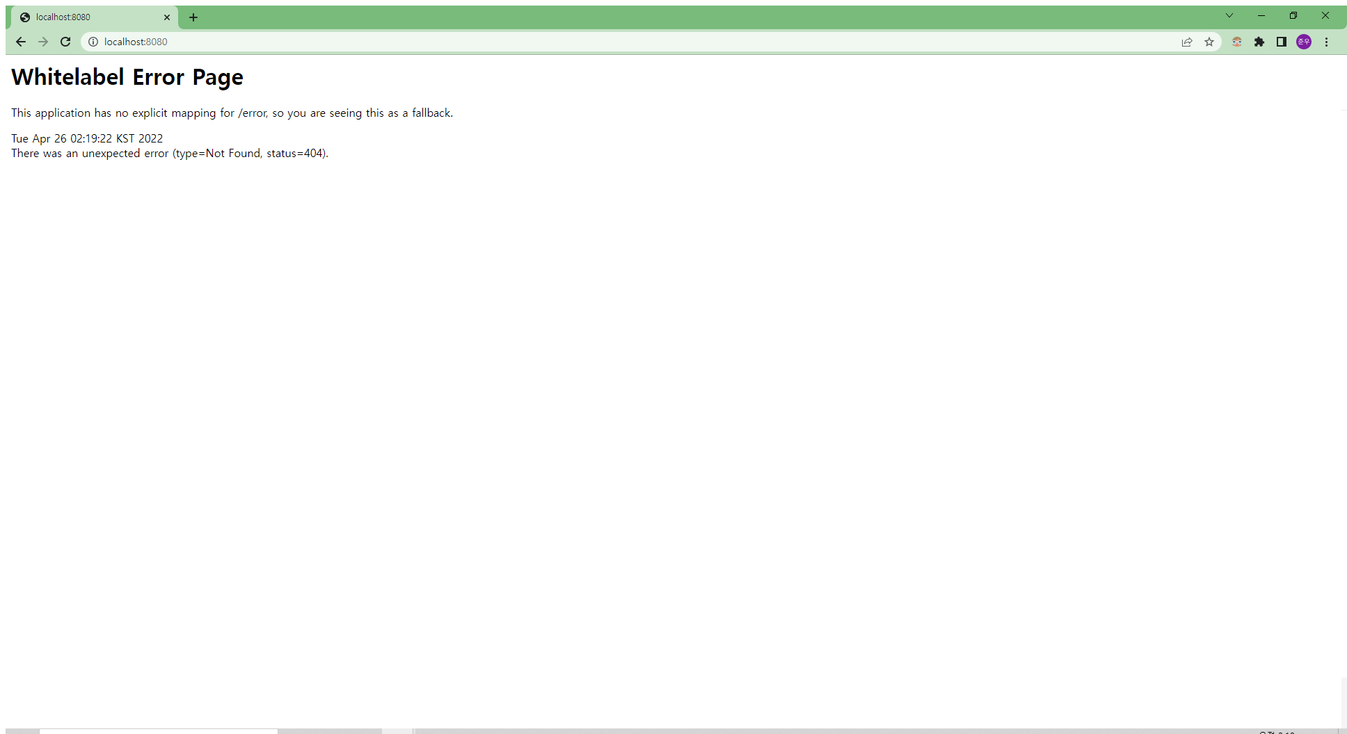 localhost:8080에도 접속해 보겠습니다.