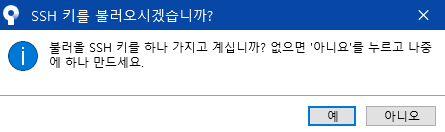7. 불러올 SSH 키가 없기 때문에 아니오를 누르겠습니다.