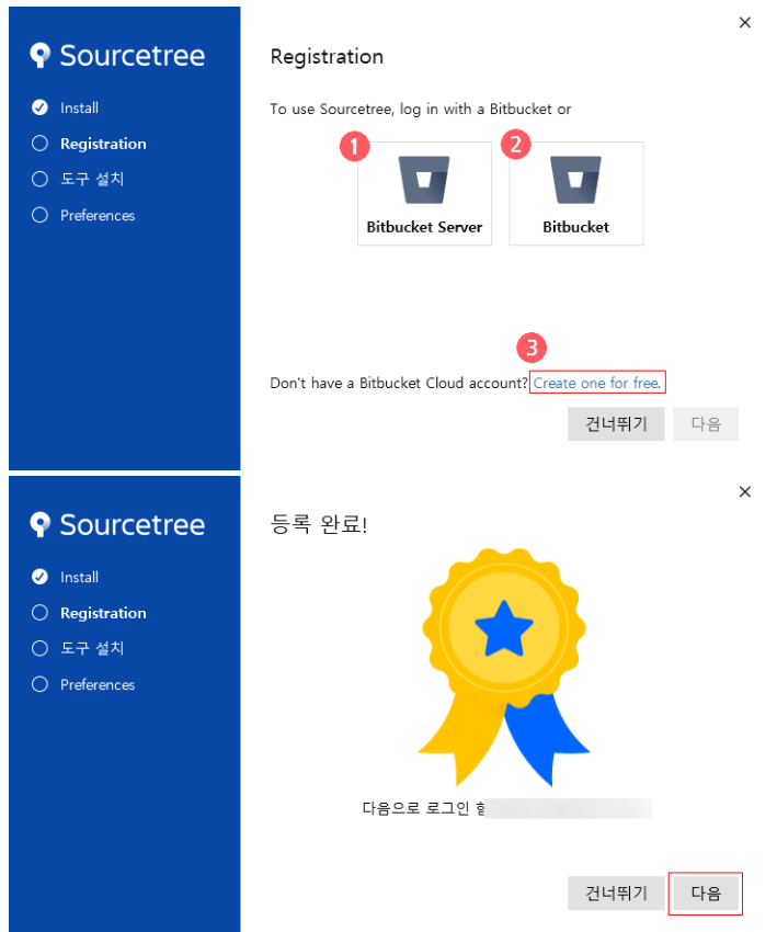 회원가입을 완료한후 Bitbucket을 누르게 되면 등록이 완료됩니다.