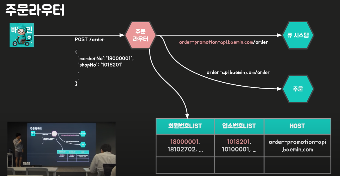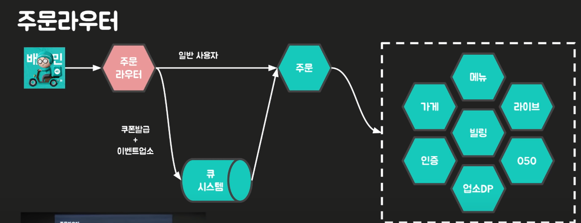 주문 라우터가 요구사항을 충족했기 때문에 이를 활용하여 큐 시스템을 넣었습니다.기존의 주문 라우터는 요청에 들어있는 회원번호와 업소번호를 가지고 Rule을 확인합니다.그리고 Rule에 설정된 HOST로 라우팅해줍니다.만약 Rule에 없는 요청이 오면 기존서버를 타게됩니다.https://www.youtube.com/watch?v=MTSn93rNPPE여기에 개발을 추가하여 해결하였습니다.쿠폰 시스템에 큐를 붙이고 쿠폰이 발행될때마다 회원번호들을 Rule에 있는 회원LIST에 쭉 넣어줍니다.업소LIST는 요일별로 업소목록을 미리 받아서 할당해 둡니다.https://www.youtube.com/watch?v=MTSn93rNPPE
