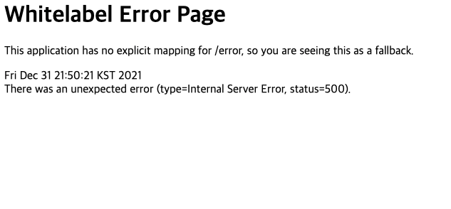 만약 우리가 웹페이지로 접속했다면 다음과 같은 whitelabel 에러 페이지를 반환받습니다.