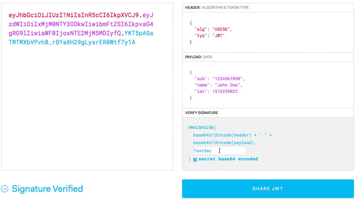 - HS256과 비밀키로 Sign 합니다.