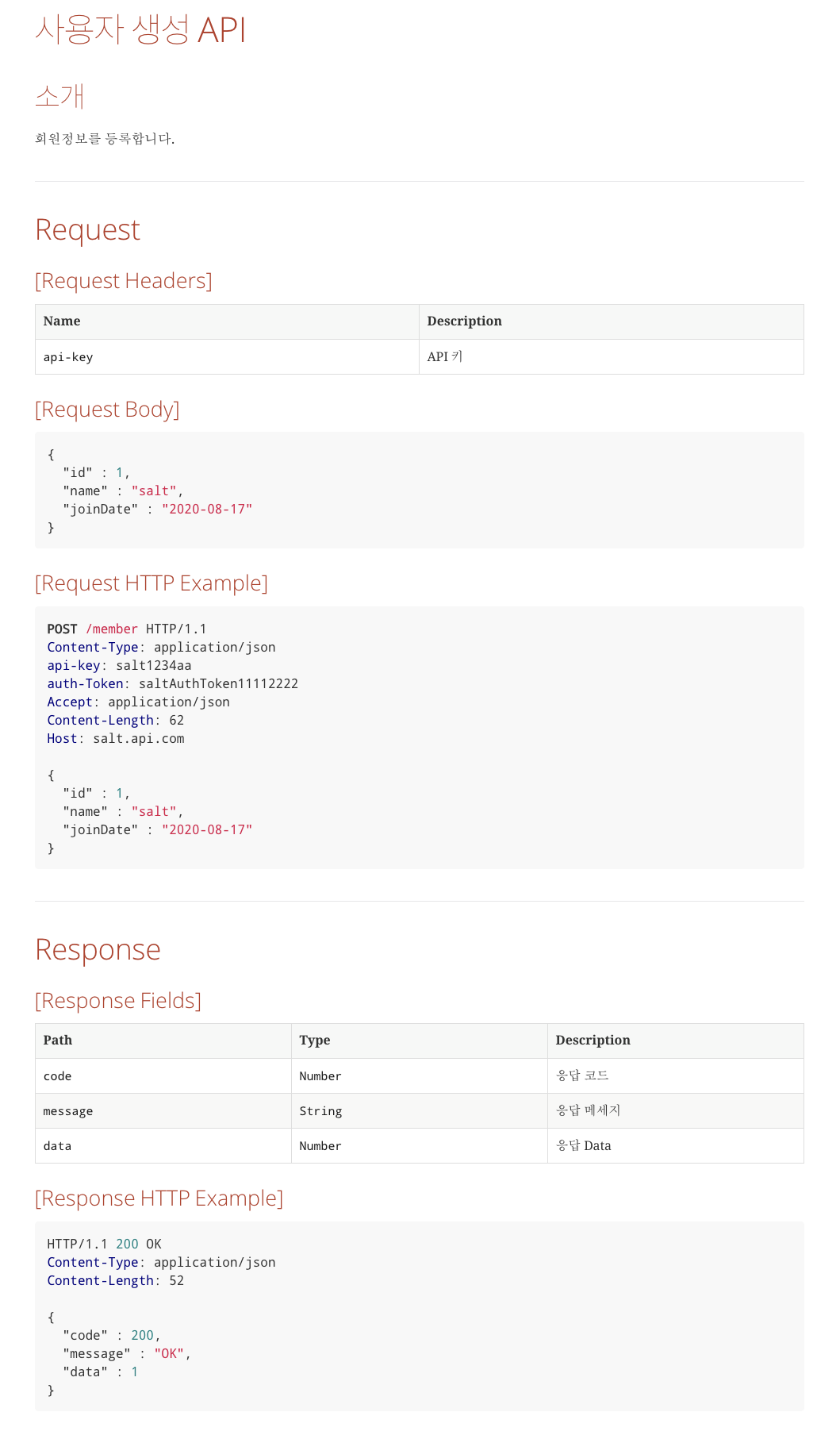 API 문서의 목적은 개발하는 스펙을 정의하는 것입니다.