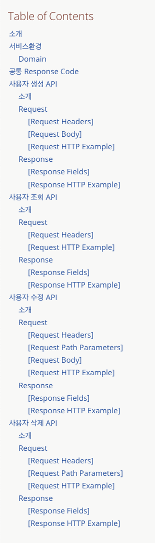 이런 상황에서 우리가 구현한 API 서비스를 깔끔한 HTML 형태의 문서로 생성해주는 프레임워크가 바로 SpringRestDocs입니다.