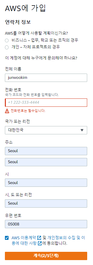 1-2단계 연락처 정보 입력