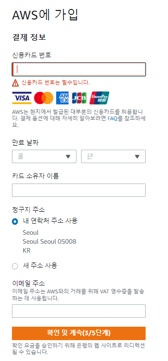 1-3단계 신용카드 정보 기입(체크카드도 됩니다) 단! Master 혹은 Visa 카드